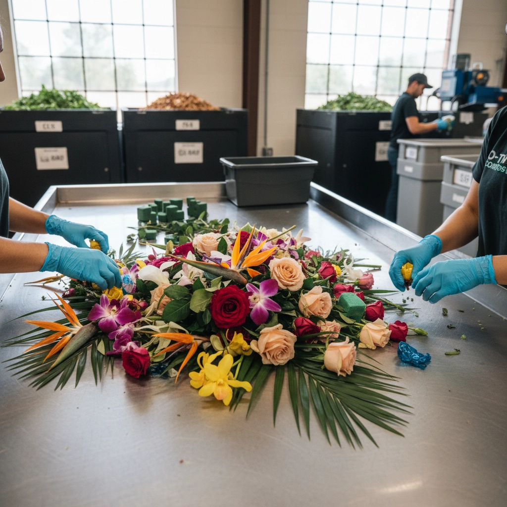 The partnership addresses a critical gap in event sustainability. Traditional event cleanup involves loading spent florals into dumpsters bound for methane-producing landfills. Our composting partnership diverts this organic matter into controlled composting environments where beneficial microorganisms break down plant materials into soil-enriching amendments.